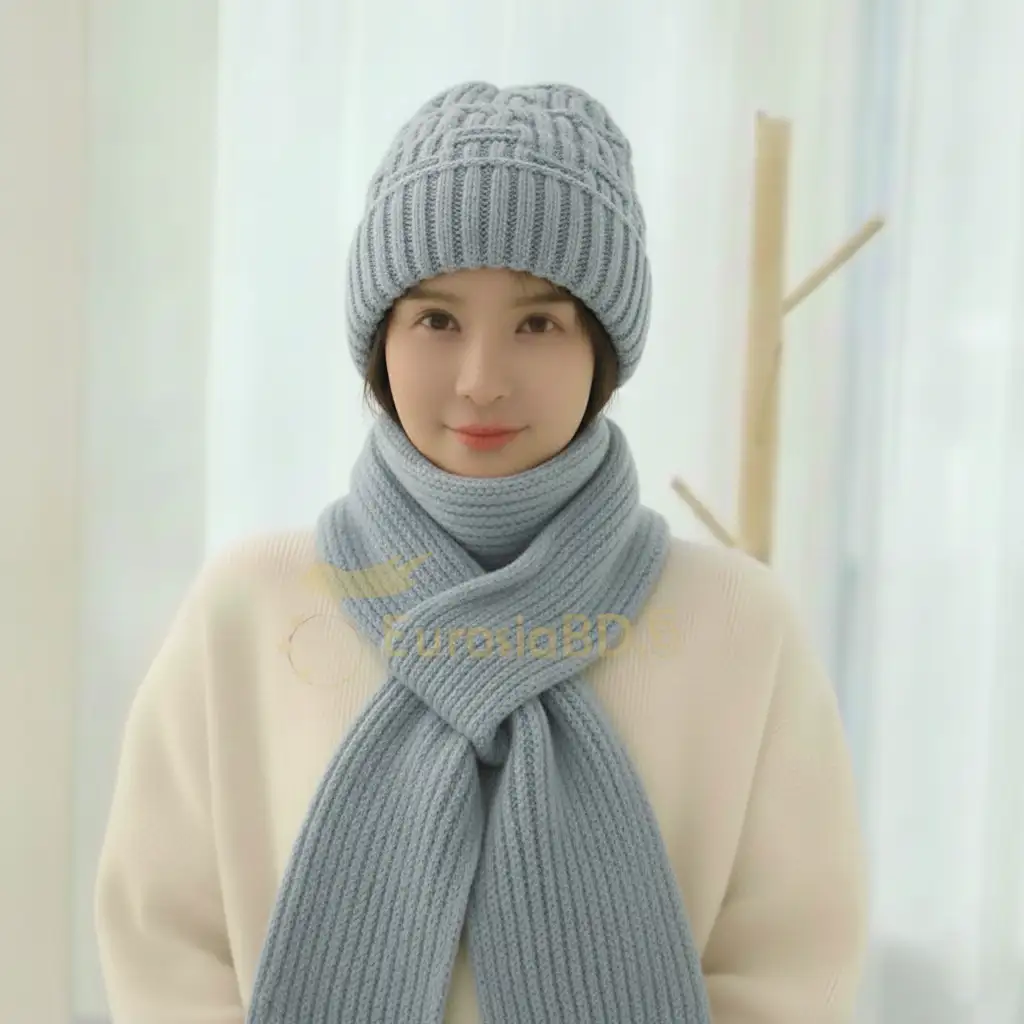 Windproof Cap with Scarf (SkyBlue-Ash)