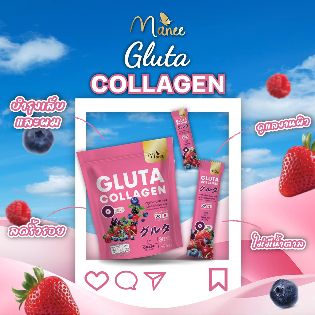 Get glowing, youthful skin with Manee Gluta Collagen Pink Juice! Packed with Glutathione, Collagen, and essential vitamins, this delicious beauty drink helps brighten skin, reduce dark spots, and improve skin elasticity. Its antioxidant-rich formula detoxifies the body, boosts hydration, and promotes overall skin health.